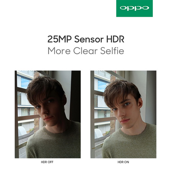 เทคโนโลยี HDR บนกล้องหน้า OPPO F9 ได้ก้าวไปอีกระดับด้วยการใช้เซนเซอร์ฮาร์ดแวร์ควบคู่กับซอฟต์แวร์ การถ่ายภาพเซลฟี่ด้วยกล้อง 25 ล้านพิกเซลพร้อมโหมดเซลฟี่ AI Beauty 2.1 ที่ได้รับพัฒนาให้ชาญฉลาดยิ่งขึ้น จึงถ่ายทอดตัวตนของคุณได้อย่างสวยงามเป็นธรรมชาติ แม้อยู่ในที่แสงจ้าหรือแสงน้อย