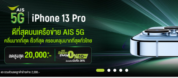 AIS 5G เตรียมวางจำหน่าย iPhone 13 Pro, iPhone 13 Pro Max, iPhone 13 และ iPhone 13 mini ที่ทั้งสวยงามและล้ำสมัย iPhone 13 Pro และ iPhone 13 Pro Max ซึ่งได้รับการออกแบบใหม่หมดทั้งภายในและภายนอก มาพร้อมกับระบบกล้องที่โปรที่สุดเท่าที่เคยมีมาบน iPhone, จอภาพ Super Retina XDR พร้อม ProMotion, แบตเตอรี่ที่ใช้งานได้นานขึ้น, ชิป A15Bionic ที่ออกแบบโดย Apple พร้อม GPU แบบ 5-core และประสบการณ์ 5G สุดล้ำ ส่วน iPhone13 และ iPhone 13 mini โดดเด่นด้วยระบบกล้องคู่ที่ล้ำสมัยที่สุดเท่าที่เคยมีมาใน iPhone และมีชิป A15 Bionic เป็นขุมพลัง ในดีไซน์ที่เพรียวบางและทนทาน