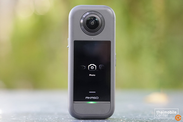 บนตัวกล้อง AKASO 360 จะมีปุ่มควบคุมหลักสำหรับการเปิด–ปิดเครื่อง และปุ่มถ่ายภาพ/วิดีโอ พร้อมหน้าจอแสดงผลที่ช่วยให้ผู้ใช้งานตรวจสอบสถานะการถ่าย โหมดที่เลือก และการตั้งค่าพื้นฐานได้โดยไม่ต้องพึ่งสมาร์ตโฟนตลอดเวลา เมนูต่าง ๆ ถูกจัดวางอย่างเป็นระเบียบ ทำให้แม้เป็นผู้ใช้งานครั้งแรกก็สามารถเรียนรู้วิธีใช้งานได้ไม่ยาก