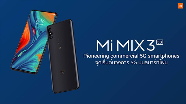Xiaomi เคยออกมาประกาศเปิดตัวสมาร์ทโฟน 5G รุ่นแรกของตนเองเป็นที่เรียบร้อยแล้วในชื่อ Mi Mix 3 5G โดยยึดการออกแบบมาจาก Mi Mix 3 รุ่นปกติด้วยหน้าจอแสดงผลแบบไร้ขอบไร้รอยบาก พร้อมกลไกสไลด์ตัวเครื่องเพื่อเปิดใช้งานกลัองหน้าที่ถูกซ่อนเอาไว้ด้านไหน ส่วนด้านหลังมาพร้อมกับระบบกล้องคู่แนวตั้ง และตัวเครื่องเซรามิกแบบโค้งรอบด้าน แต่สิ่งที่เปลี่ยนแปลงไปคือ Mi Mix 3 5G ปรับไปใช้ชิปเซ็ตประมวลผล Snapdragon 855 พร้อมขยายแบตเตอรี่ให้มากขึ้นเป็น 3800mAh นอกจากนี้ ยังเพิ่มระบบ Hybrid Cooling System เพื่อช่วยถ่ายเทความร้อนออกจากตัวเครื่องได้อย่างรวดเร็ว โดยทาง Xiaomi ก็ได้วางจำหน่ายสมาร์ทโฟนรุ่นดังกล่าวในสวิสเซอร์แลนด์เป็นที่เรียบร้อยแล้ว