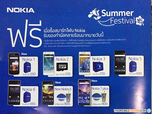 เรียกได้ว่าเป็นไปอย่างคึกคักเช่นเดิมเลยนะคะ กับงาน Thailand Mobile Expo 2018 มหกรรมมือถือครั้งยิ่งใหญ่ในประเทศไทย ที่รวบรวมโปรโมชั่นสมาร์ทโฟนรุ่นเด่นจากแบรนด์ดัง และอุปกรณ์เสริมต่างๆ ในราคาพิเศษ รวมถึงการลดแลกแจกแถมกันแบบจัดเต็ม ซึ่งหนึ่งในแบรนด์ที่ผู้ใช้ให้ความสนใจได้แก่ Nokia ที่กลับมาทำตลาดในประเทศไทยอีกครั้งด้วยสมาร์ทโฟน Android โดยมีตัวเลือกให้ใช้งานอย่างครบครันในทุกระดับ ตั้งแต่รุ่นเรือธงไปจนถึงระดับเริ่มต้นในราคาย่อมเยา วันนี้ทางทีมงาน Thaimobilecenter ได้รวบรวมข้อมูลโปรโมชั่นสำหรับสมาร์ทโฟนจากแบรนด์ Nokia มาให้ได้ชมกัน เพื่อเป็นแนวทางสำหรับผู้ที่สนใจ ซึ่งจะมีรายละเอียดอย่างไรบ้างนั้น ชมไปพร้อมกันเลยค่ะ