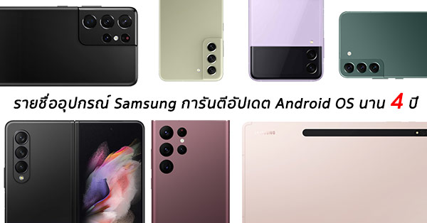 หลังจากที่มีข่าวลือว่าทาง Samsung เตรียมปรับนโยบายการอัปเดตเวอร์ชัน Android OS ให้กับอุปกรณ์ในค่ายนานขึ้นที่ 4 ปีเต็ม ล่าสุดจากงานเปิดตัว Samsung Galaxy S22 Series ก็มีการยืนยันเรียบร้อยแล้ว พร้อมยืนยัน S22 Series เป็นรุ่นประเดิม ล่าสุดนี้ก็มีการเปิดเผยรายชื่ออุปกรณ์ Samsung ที่การันตีอัปเดต Android OS นาน 4 ปีเต็ม พร้อมอัปเดตแพทช์ความปลอดภัยถึง 5 ปี ออกมาแล้ว ซึ่งจะมีรุ่นใดบ้างนั้นไปชมกันเลยค่ะ