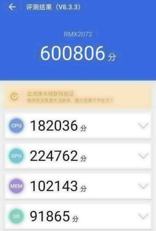 Ice Universe แหล่งข่าวที่มีความน่าเชื่อถือรายหนึ่งบน Twitter ได้ปล่อยภาพผลทดสอบ AnTuTu ของสมาร์ทโฟน realme เลขรหัสโมเดล RMX2072 ซึ่งทางสื่อต่างประเทสเชื่อว่าเป็นเลขรหัสของ realme X3 Pro ว่าที่มือถือเกมมิ่งที่ยังไม่เปิดตัวในขณะนี้ โดยผลปรากฏว่าสมาร์ทโฟนรุ่นดังกล่าวสามารถทำคะแนนทดสอบได้สูงถึง 600806 คะแนน ซึ่งถือว่าเป็นตัวเลขที่สูงกว่าค่าเฉลี่ยของมือถือ Android ทุกรุ่นตามการจัดอันดับของ AnTuTu ประจำเดือนมีนาคม ปี 2020 จึงมีความเป็นไปได้ว่า realme X3 Pro จะมาพร้อมกับชิปเซ็ตตัวท็อปอย่าง Snapdragon 865 ที่มีการปรับ Clock Speed รวมถึงหน่วยความจำภายในแบบ UFS 3.1 ที่อ่านเขียนข้อมูลได้อย่างรวดเร็ว รวมถึงหน่วยความจำ RAM แบบ LPDDR5 เทคโนโลยีใหม่ล่าสุด