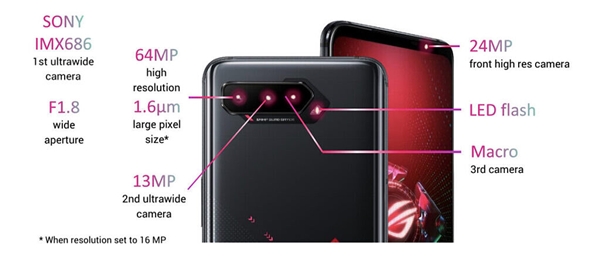 ด้านการถ่ายภาพ ROG Phone 5 Series มาพร้อมกับระบบกล้องหลัง 3 ตัว แบ่งออกเป็น กล้องตัวหลักความละเอียด 64 ล้านพิกเซล, กล้อง Ultra Wide ความละเอียด 13 ล้านพิกเซล และกล้อง Macro ความละเอียด 5 ล้านพิกเวล พร้อมกล้องหน้าความละเอียด 24 ล้านพิกเซล