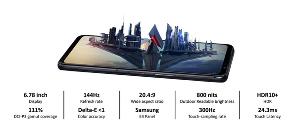 - หน้าจอแสดงผลแบบ AMOLED ขนาด 6.78 นิ้ว ความละเอียดระดับ Full HD+ พร้อมค่า Refresh Rate ระดับ 144Hz และค่า Touch Sampling Rate ระดับ 300Hz