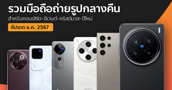ในที่สุดปี 2567 ก็กำลังจะผ่านพ้นไป และในช่วงสิ้นปีแบบนี้ก็เป็นช่วงเวลาแห่งการเฉลิมฉลองที่มีอีเวนต์มากมายยาวไปตั้งแต่เทศกาลคริสต์มาสยันปีใหม่ ซึ่งอีเวนต์ต่าง ๆ ก็มักจะจัดกันในเวลากลางคืน หากต้องการเก็บช่วงเวลาดี ๆ เหล่านี้ไว้ก็จำเป็นต้องมีมือถือที่ถ่ายรูปกลางคืนได้ดีด้วย ในวันนี้เราจึงขอแนะนำมือถือถ่ายรูปกลางคืนสวยประจำปี 2567 เอาไว้ถ่ายรูปสวย ๆ ช่วงสิ้นปี มีรุ่นไหนบ้างไปดูกันเลย