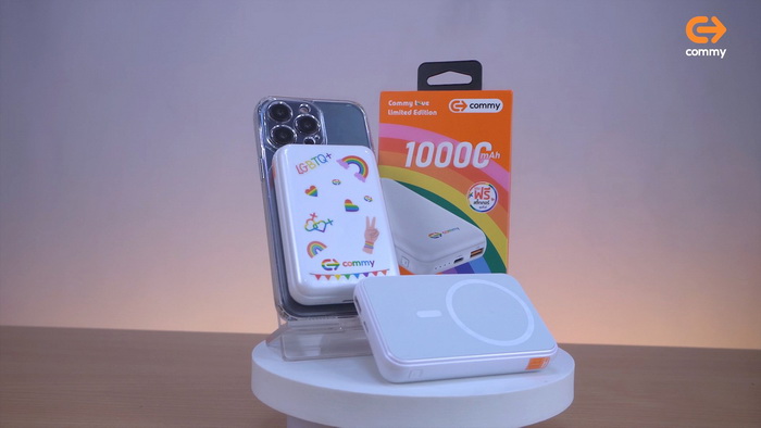 เอาใจหนุุ่มสาวที่กำลังตามหาพาวเวอร์แบงค์สักตัวที่พกพาง่าย สะดวกสบาย ไม่มีสายให้กวนใจ เพื่อเตรียมความพร้อมออกไปม่วนจอยกับสงกรานต์ที่กำลังจะมาถึง อย่าง Commy Limited Edition Powerbank MagCharge Magnetic Magsafe พาวเวอร์แบงค์ไร้สายแม็กเซฟ โดยจุดเด่นของเจ้าตัวนี้คือ เป็นพาวเวอร์แบงค์ไร้สายที่พกพาความจุมาให้เต็มสปีดมากถึง 10000 mAh รองรับระบบการชาร์จแบบเร็ว จ่ายไฟสูงสุดถึง 20W มีไฟ LED แสดงปริมาณแบตเตอรี่ที่แม่นยำ มีระบบแม่เหล็กยึดติดแน่นไม่หลุดง่ายระหว่างการใช้งาน ที่สำคัญมีความปลอดภัยสูงหายห่วงเรื่องแบตเสื่อม เพราะพาวเวอร์แบงค์รุ่นนี้ทำมาจาก Polymer Battery ซึ่งเป็นเทคโนโลยีที่มีความปลอดภัยสูงกว่าแบตเตอรี่ทั่วไป นอกจากจะได้เป็นเจ้าของพาวเวอร์แบงค์สุดเก๋ตัวนี้แล้ว ยังมีส่วนช่วยสนับสนุนและส่งเสริมความหลากหลายทางเพศ (LGBTQ+) เพราะรายได้ส่วนหนึ่งหลังหักค่าใช้จ่ายนำไปมอบให้แก่องค์กรและมูลนิธิเพื่อความเท่าเทียมทางเพศ ราคาเพียง 1,490 บาท