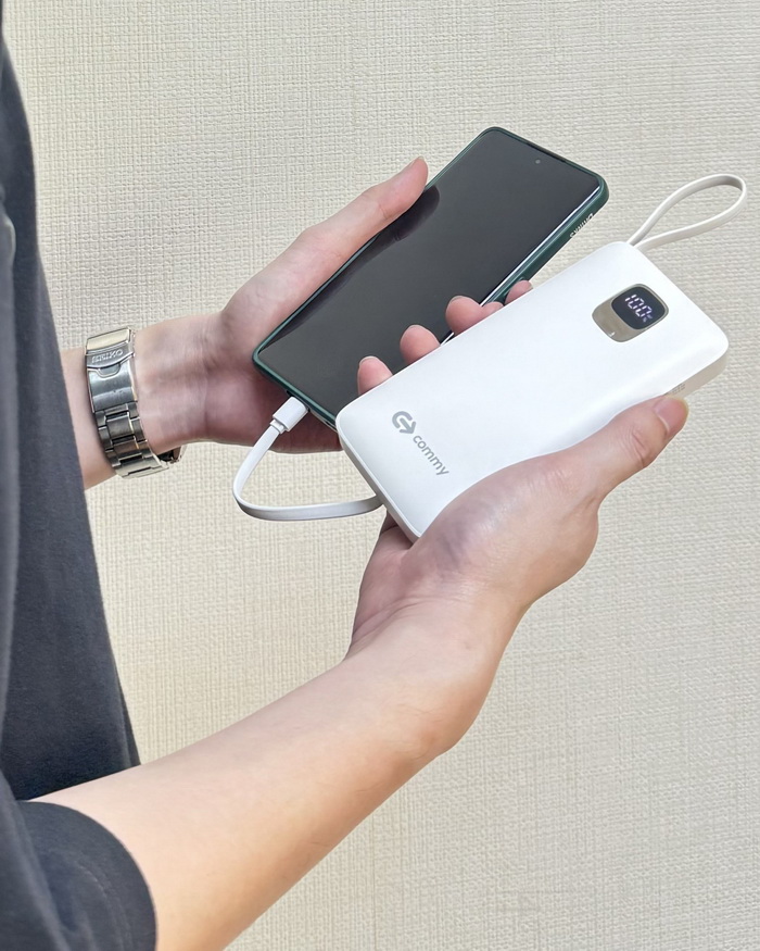 ขนาดเล็กกะทัดรัด เบาสบาย มีให้เลือกถึง 2 สีด้วยกันคือ สีขาว กับ สีดำ และสามารถชาร์จพร้อมกันได้ถึง 3 อุปกรณ์ ต้องยกให้ตัวนี้ Commy Powerbank รุ่น P7 บอกเลยว่ารุ่นนี้เหมาะมากสำหรับใครที่ต้องการความเบาสบาย มาพร้อมสายยาวถึง 30 เซนติเมตร สามารถแชร์ให้เพื่อน ๆ หรือคนรอบข้างของเราได้ โดยจุดเด่นคือ ความจุของแบตเตอรี่มีมากถึง 10000 mAh มีความแข็งแรงทนทาน ป้องกันความเสียหายของตัวแบตเมื่อสัมผัสกับน้ำ รองรับเทคโนโลยีการชาร์จเร็ว และชาร์จไฟได้สูงสุดถึง 22.5W สามารถรองรับ USB Output Max 22.5W, Type-C Output 20W และ Lightning Output 20W มีระบบการจัดพลังงานอัจฉริยะป้องกันแบตเตอรี่จากไฟฟ้าลัดวงจร จำหน่ายในราคาเพียง 990 บาท