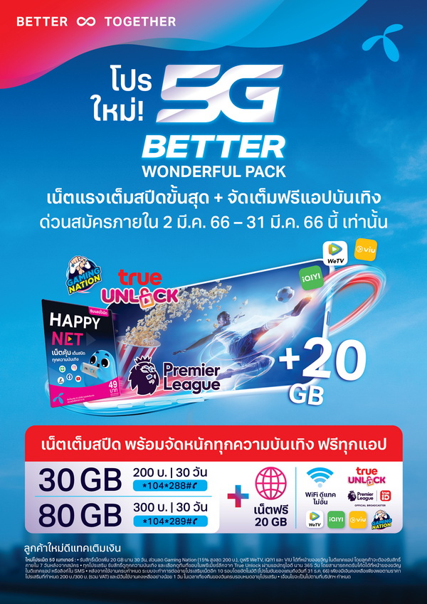 โปรดีแทค 5G Better Wonderful Pack พิเศษเปิดซิมดีแทคเติมเงินใหม่พร้อมสมัครโปรนี้ มี 2 แพ็กเกจให้เลือก