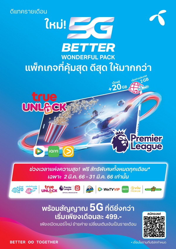 - ชมฟรี True Unlock ปลดล็อคทุกความบันเทิง พร้อมดูฟรี EPL ทีมโปรด