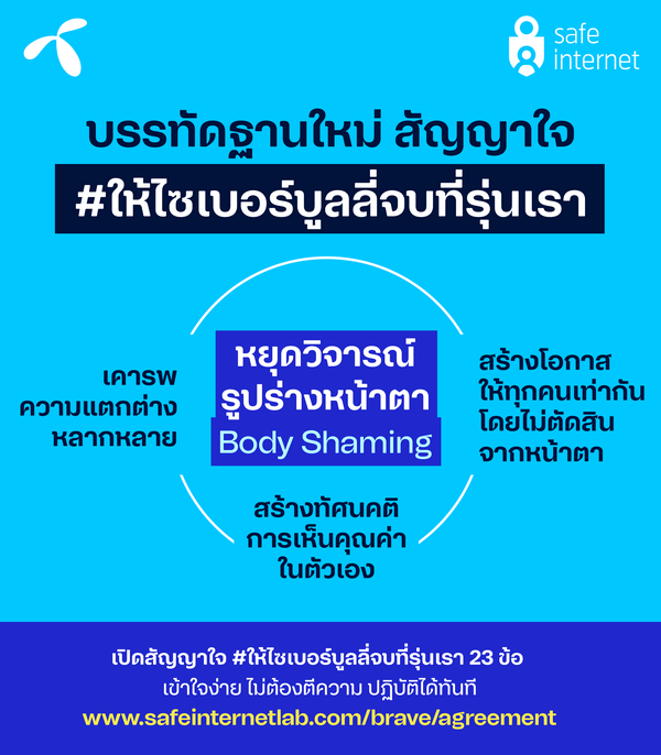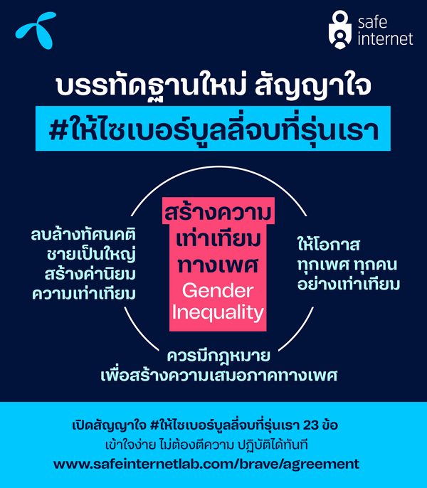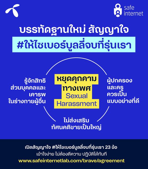 สำหรับผู้ที่สนใจ “ฟัง” เสียงของคนรุ่นใหม่ฉบับเต็ม สามารถอ่านความคิดพวกเขาได้ที่ https://www.safeinternetlab.com/brave/agreement เข้าใจง่าย นำไปปฏิบัติได้ทันที ไม่ต้องตีความ ร่วมส่งเสียงต่อได้ เพื่อสร้างสังคมออนไลน์แบบที่รุ่นเราอยากเห็น
