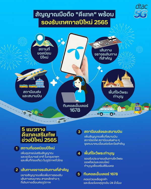 ดีแทคมุ่ง 5 แนวทางในการรองรับการใช้งานช่วงปีใหม่ 2565 ดังนี้