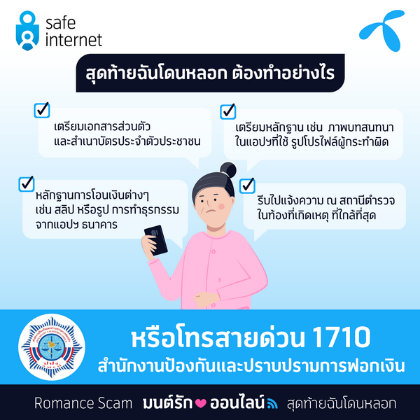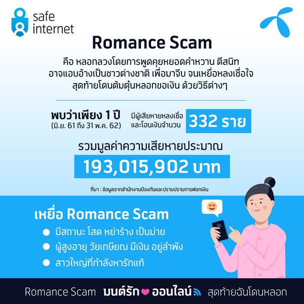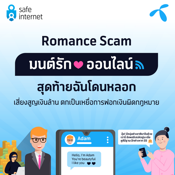 dtac Safe Internet ชวนทำความรู้จัก#RomanceScam เสี่ยงสูญเงินล้าน ตกเป็นเหยื่อการฟอกเงินผิดกฎหมายโดยไม่รู้ตัว