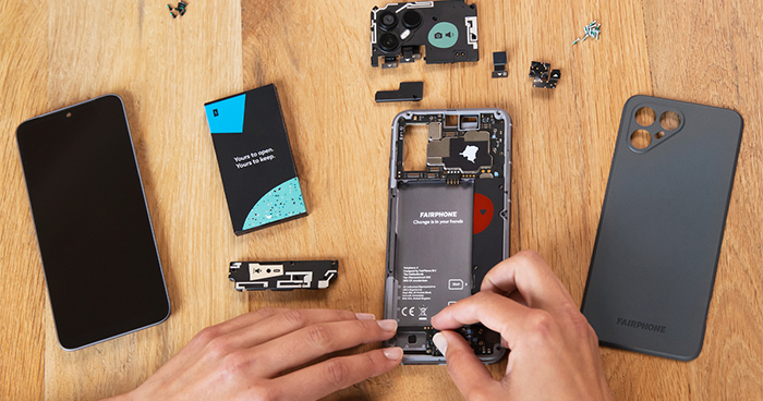 สำหรับ Fairphone เป็นแบรนด์สมาร์ทโฟนที่ทำตลาดภายใต้แนวคิด “สมาร์ทโฟนที่แฟร์กับทุกคน” โดยออกแบบสมาร์ทโฟนให้ถอดแบตเปลี่ยนได้ และผู้ใช้สามารถแกะซ่อมได้เอง ชิ้นส่วนภายในถูกออกแบบให้เปลี่ยนง่ายโดยไม่ต้องใช้ความรู้ทางการช่างมากนัก และมีอะไหล่ขายตลอด พร้อมนโยบายการอัปเดตซอฟต์แวร์ที่ยาวนาน เพื่อให้ผู้บริโภคใช้มือถือได้นาน และคุ้มค่าที่สุด ขณะเดียวกัน ยังเป็นมิตรกับสิ่งแวดล้อมด้วยการเลือกใช้วัสดุรีไซเคิลในการผลิตให้มากที่สุดเท่าที่จะทำได้