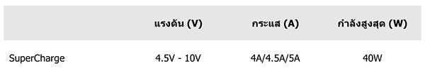 SuperCharge เข้ากันได้กับมาตรฐาน USB-PD เนื่องจากมีเทคโนโลยี Smart Charge ที่จะเปลี่ยนโหมดการชาร์จตามประเภทของอแดปเตอร์นั่นเอง