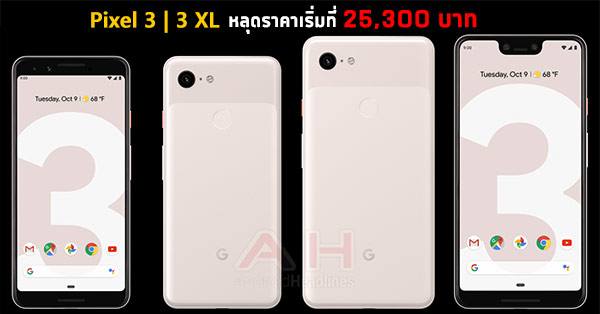 Google Pixel 3 และ 3 XL หลุดราคาเริ่มที่ 25,300 บาท และสีชมพูใหม่ล่าสุด ก่อนเปิดตัวจริงพรุ่งนี้ คาดมาพร้อมจอใหญ่ไร้ขอบ 6.3 นิ้ว แรงด้วยชิป Snapdragon 845 และ Android 9.0!
