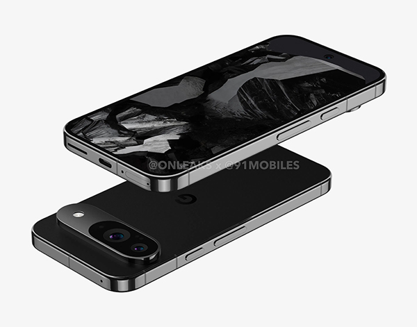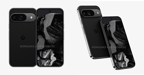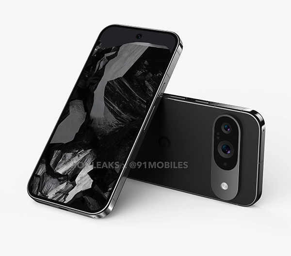 ภาพเรนเดอร์ชุดนี้ถูกเผยแพร่โดยเว็บไซต์ 91mobiles โดย Pixel 9 ยังคงมีดีไซน์ที่คล้ายกับ Pixel 8 แต่มาในเฟรมโลหะแบบสันแบน และแถบกล้องหลังที่ยกนูนขึ้นมาในแนวขวาง แต่ไม่ยาวไปจนถึงขอบเครื่อง ด้านหลังมีกล้อง 2 ตัว และไฟแฟลช 1 ดวง