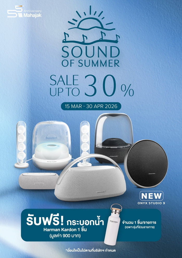 บริษัท มหาจักรดีเวลอปเมนท์ จำกัด จัดดีลสุดพิเศษ Mahajak Sound of Summer เปิดประสบการณ์เสียงระดับพรีเมียมต้อนรับซัมเมอร์ สินค้าแบรนด์ Harman Kardon มอบส่วนลดสูงสุดถึง 30% ตั้งแต่วันที่ 15 มีนาคม 2569 – 30 เมษายน 2569 นี้เท่านั้น