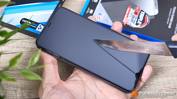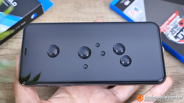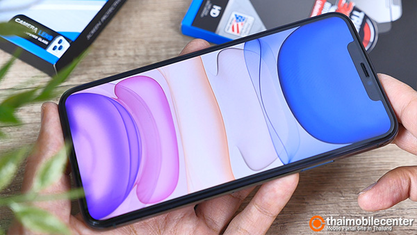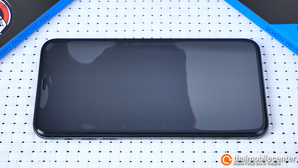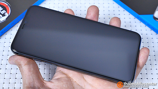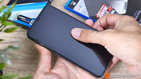 หลังจากติดตั้ง ก็จะเห็นว่าแผ่นกระจกดูสวยพรีเมียมโค้งมนกลมกลืนไปกับหน้าจอ และตัวเครื่องเดิมๆ ของ iPhone 11 Pro Max ได้เป็นอย่างดี