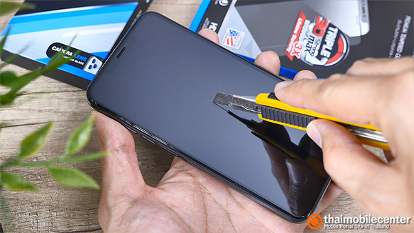 เมื่อเตรียมพื้นผิวหน้าจอของ iPhone 11 Pro Max เรียบร้อยดีแล้ว ก็ให้เราแกะแผ่นกระจกกันรอย Hi-Shield 3D Triple Strong Max ออกมาเพื่อเตรียมติดตั้ง