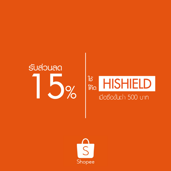 รับส่วนลด 15% เมื่อซื้อสินค้า Hi-Shield ฟิล์มเเละกระจกกันรอยโทรศัพท์พรี่เมี่ยม ขั้นต่ำ 500 บาทใน Shopee 26 - 30 มิถุนายน นี้ ที่ https://shopee.co.th/hishieldofficialshop