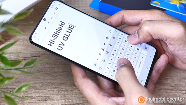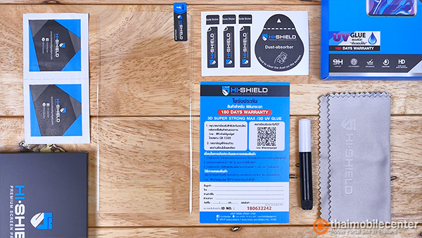 สำหรับขั้นตอนของการติดตั้ง ก็ทำได้ง่ายๆ ไม่ต่างไปจากกระจกกันรอยกาว UV รุ่นก่อนหน้านี้ของ Hi-Shield เองครับ เริ่มตั้งแต่การทำความสะอาดหน้าจอด้วยการนำผ้าชุบแอลกอฮอล์มาเช็ดคราบเปื้อน หรือคราบมัน ออกไปจากผิวกระจก