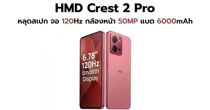 HMD Crest 2 Pro หลุดสเปกก่อนเปิดตัว มือถือจอ 120Hz กล้องหน้า 50MP แบต 6000mAh
