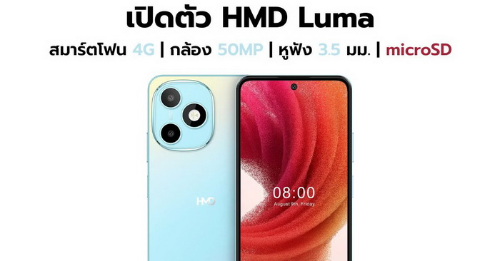 เปิดตัว HMD Luma สมาร์ตโฟน 4G กล้อง 50MP มีหูฟัง 3.5 มม. และช่อง microSD