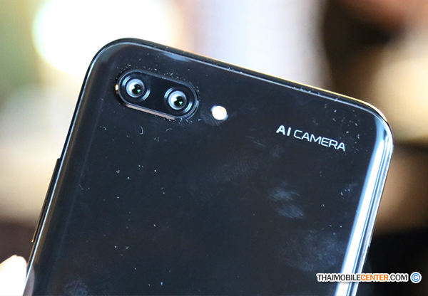 ที่ด้านบนมาพร้อมกับระบบกล้องคู่แบบ AI Camera โดยแบ่งออกเป็น กล้องตัวหลักความละเอียด 24 ล้านพิกเซล ที่เลือกใช้เซ็นเซอร์รับภาพขาว-ดำ (Monochome) และกล้องตัวรองความละเอียด 16 ล้านพิกเซล ที่เลือกใช้เซ็นเซอร์รับภาพสี (RGB) สำหรับความพิเศษของกล้องคู่บน Honor 10 คือการมาพร้อมกับเทคโนโลยี AI 2.0 Camera ซึ่งเป็นการนำเอาระบบปัญญาประดิษฐ์ (AI) เข้ามาช่วยวิเคราะห์สภาพแวดล้อม และวัตถุที่อยู่ตรงหน้า เพื่อปรับแต่งการตั้งค่าของกล้องให้เหมาะสมแบบอัตโนมัติ และจุดที่น่าสนใจคือ AI ของ Honor 10 สามารถแยกแยะ Object ที่ปรากฏอยู่บนภาพ เพื่อนำไปปรับแต่งให้มีความสวยงามได้ด้วย อย่างเช่นในบางสถานการณ์ ที่ภายในเฟรมมี Object ต่างกันทั้งท้องฟ้า, แม่น้ำ, ต้นไม้ และตัวแบบ แต่ตัว AI ก็ยังสามารถแยกแยะวัตถุ และซีนต่างๆ บนภาพได้