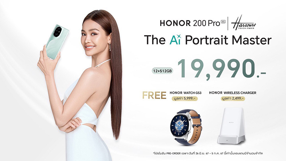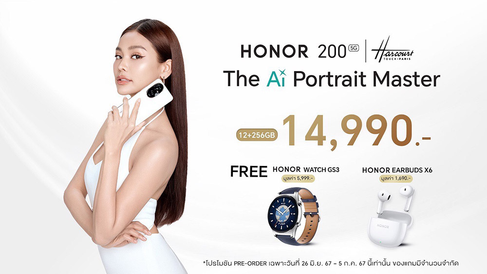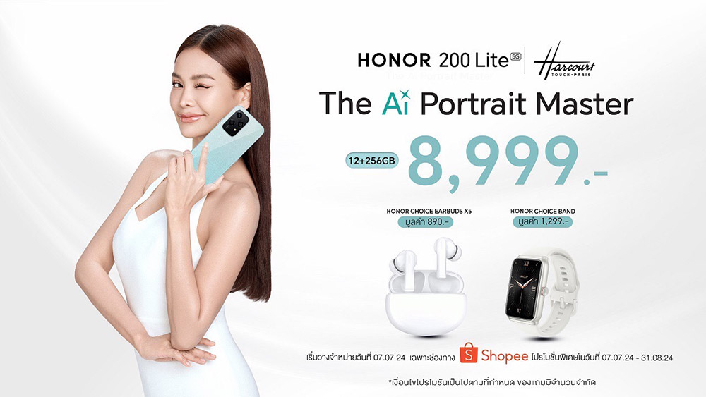 25 มิถุนายน 2567, กรุงเทพฯ – ออเนอร์ (HONOR) ผู้ให้บริการอุปกรณ์อัจฉริยะชั้นนำระดับโลก ประกาศเปิดตัวสมาร์ตโฟนสเปคระดับเรือธงซีรีส์ใหม่ล่าสุด HONOR 200 Series สู่ตลาดประเทศไทยอย่างเป็นทางการ ตอกย้ำความมุ่งมั่นในการก้าวข้ามขีดจำกัดการถ่ายภาพสู่ระดับมืออาชีพ ภายใต้คอนเซปต์ “The Ai Portrait Master” นำเสนอนวัตกรรมการถ่ายภาพด้วยกล้อง AI สุดล้ำ พร้อมจับมือ Harcourt Studio สตูดิโอถ่ายภาพชั้นนำระดับโลกจากปารีสที่เชี่ยวชาญด้านการถ่ายภาพบุคคลด้วยเอฟเฟกต์แสงและเงาที่เป็นเอกลักษณ์ โดยร่วมกันออกแบบ HONOR AI Portrait Engine เพื่อมอบประสบการณ์ให้ผู้ใช้ถ่ายภาพบุคคลระดับสตูดิโอได้บนมือถือ ซึ่งถือเป็นครั้งแรกในอุตสาหกรรมสมาร์ตโฟน ตลอดจนจัดเต็มประสิทธิภาพการใช้งานครอบคลุมทุกด้าน