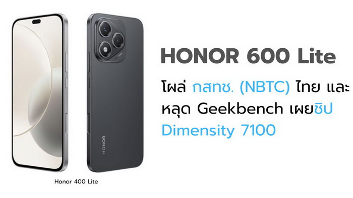 HONOR 600 Lite โผล่ กสทช. (NBTC) ไทย และหลุด Geekbench เผยชิป Dimensity 7100 พร้อม RAM 8GB