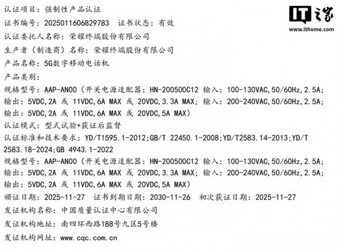 HONOR GT 2 Series ผ่านรับรอง 3C ยืนยันชาร์จไว 100W พร้อมแบตใหญ่สุด 10,000mAh