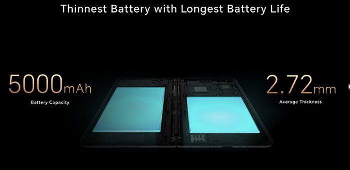 HONOR Magic V2 สมาร์ตโฟนจอพับระดับแฟลกชิปรุ่นล่าสุดจากแบรนด์ HONOR ก้าวขึ้นมาครองตลาดสมาร์ตโฟนด้วยดีไซน์และประสิทธิภาพที่โดดเด่น มีความบางและเบาที่สุดในปัจจุบัน พร้อมสร้างมาตรฐานใหม่และมอบประสบการณ์การใช้งานที่ดีที่สุดให้กับกลุ่มเป้าหมาย โดยรุ่นนี้ มาพร้อมแบตเตอรี่ที่บางที่สุดที่ทาง HONOR พัฒนาขึ้นมาเองด้วยแบตเตอรี่คู่ซิลิคอนคาร์บอนขนาดใหญ่ 5000mAh โดยความหนาเฉลี่ยเพียง 2.72 มิลลิเมตร และให้ความจุเยอะที่สุดในบรรดาสมาร์ตโฟนจอพับรุ่นอื่น ๆ อีกทั้งยังรองรับการชาร์จไวกำลังไฟ 66 วัตต์ ทำให้ผู้ใช้สามารถพกพาสมาร์ตโฟนไปได้ในทุกที่ทุกเวลาโดยไม่ต้องชาร์จใหม่ตลอดทั้งวัน