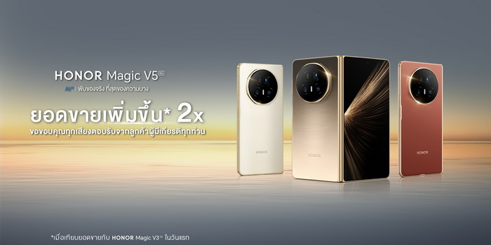 HONOR Magic V5 ทำลายสถิติ! กวาดยอดจองพุ่ง 2 เท่า จากรุ่นก่อน สร้างปรากฏการณ์ใหม่ ขึ้นแท่นสมาร์ตโฟนจบพับที่ดีที่สุดในตลาด