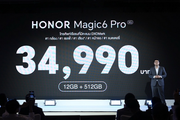 ออเนอร์ (HONOR) ผู้ให้บริการอุปกรณ์อัจฉริยะชั้นนำระดับโลก ประกาศเปิดตัวสมาร์ตโฟนระดับแฟลกชิป HONOR Magic6 Pro ภายใต้คอนเซปต์ “Discover the Magic - ถ่ายภาพเหนือจินตนาการ” ชูจุดขายด้วยเทคโนโลยีกล้อง AI สุดล้ำที่ปฏิวัติการถ่ายภาพได้อย่างสมบูรณ์แบบ ด้วยความสามารถเหนือชั้นกับเลนส์กล้องหลัก Periscope Telephoto ความละเอียด 180 ล้านพิกเซล อัลตร้าไวด์ความละเอียด 50 ล้านพิกเซล Super Dynamic Falcon H9000 ความละเอียด 50 ล้านพิกเซล และ AI Motion Sensing Capture เพื่อมอบประสบการณ์ให้ผู้ใช้ครีเอทภาพถ่ายด้วยสมาร์ตโฟนได้แบบมืออาชีพ ผสานประสิทธิภาพการใช้งานต่อเนื่องยาวนานด้วยแบตเตอรี่ซิลิคอนคาร์บอนรุ่นใหม่ ขนาด 5,600mAh บางที่สุดและความจุเยอะกว่าคู่แข่งในตลาด และยังเติมเต็มอรรถรสในการรับชมคอนเทนต์ผ่านหน้าจอด้วยจอถนอมสายตา 6.8 นิ้ว พร้อมนวัตกรรม HONOR NanoCrystal Shield ทำให้หน้าจอทนทานต่อแรงกระแทกและป้องกันรอยขีดข่วนระดับสูง อีกทั้งยังมีฟีเจอร์ Magic Portal ที่พร้อมมาเติมเต็มการใช้งานแอปพลิเคชั่นต่าง ๆ อย่างไร้พรมแดนไม่มีสะดุดด้วยลากหรือกดเพียงครั้งเดียว ถือเป็นการสร้างมาตรฐานใหม่ให้กับวงการสมาร์ตโฟนในระดับเดียวกันที่ดีที่สุด เปิดตัวในราคา 34,990 บาท เริ่มจำหน่ายตั้งแต่วันที่ 5 เมษายน 2567 เป็นต้นไป ที่ร้านตัวแทนหน่ายจำหน่ายทั่วประเทศ