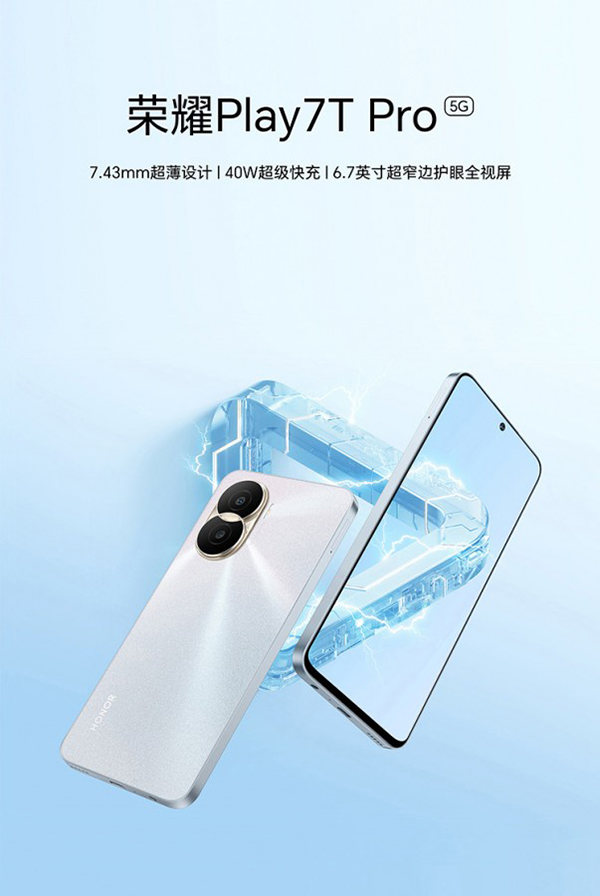 Honor Play 7T Pro จะมีสเปกส่วนใหญ่เหมือนกับรุ่นธรรมดา แต่มีการอัปเกรดขึ้นในส่วนของหน้าจอ, กล้องหน้า และระบบชาร์จไว โดยมีหน้าจอ 6.7 นิ้ว LTPS LCD คมชัดระดับ FHD+ พร้อมโมดูลกล้องหน้ารูปทรงหยดน้ำรองรับกล้อง Selfie 8MP ส่วนด้านหลังมีชุดกล้องหลังคู่ 50MP + กล้อง Depth 2MP เหมือนรุ่นธรรมดา ขับเคลื่อนด้วยชิป MediaTek Dimensity 6020 รันบนระบบปฏิบัติการ Android 12 ครอบทับด้วย Magic UI 6.1 โดยมีแบตเตอรี่ความจุลดลงมาเป็น 4,000 mAh แต่รองรับชาร์จไวได้ 40W พร้อมเซนเซอร์แสกนลายนิ้วมือด้านข้าง และช่องหูฟัง