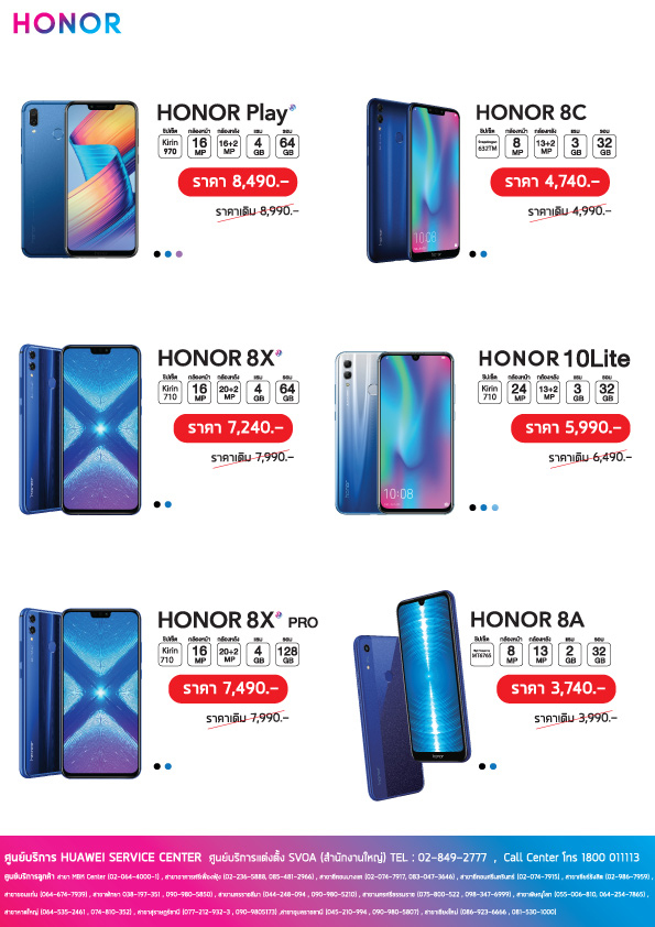 - HONOR 8X ลดสูงสุดในราคาพิเศษเพียง 7,240 บาท จากราคาปกติ 7,990 บาท