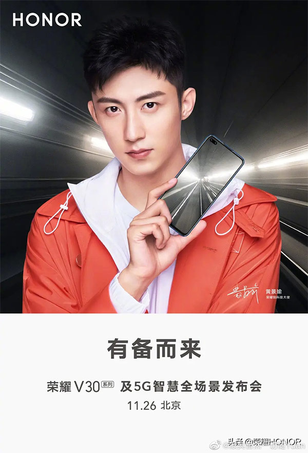 เรียกได้ว่าข่าวคราวเงียบหายไปพักนึง สำหรับ Honor V30 ว่าที่สมาร์ทโฟนเรือธงรุ่นใหม่ของทาง Honor โดยในล่าสุดทาง Honor ประเทศจีนได้ปล่อยทีเซอร์ยืนยันการเปิดตัวของ Honor V30 อย่างเป็นทางการในวันที่ 26 พฤศจิกายนนี้