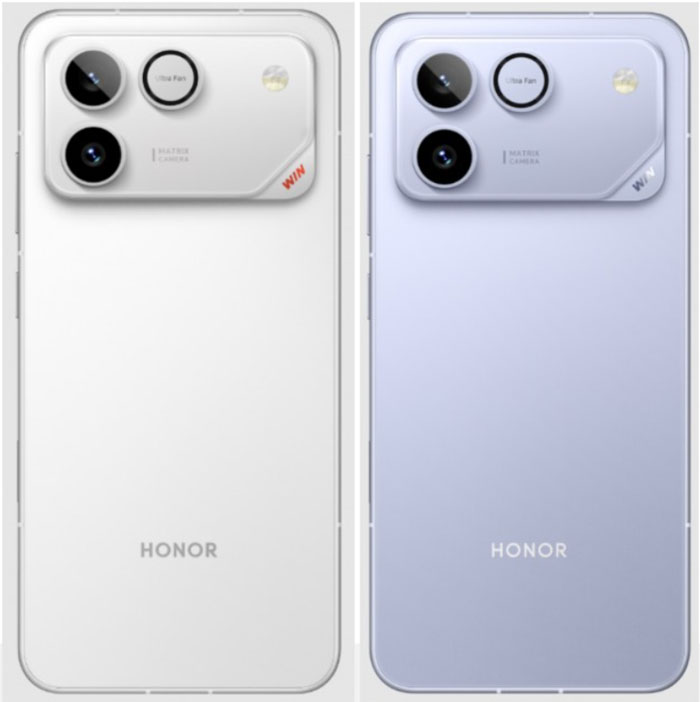 ด้านดีไซน์ HONOR เผยภาพตัวเครื่องแบบเต็มออกมาแล้ว โดย HONOR Win จะมาพร้อมกล้องหลัง 3 ตัว ขณะที่ HONOR Win RT จะให้กล้องหลัง 2 ตัว