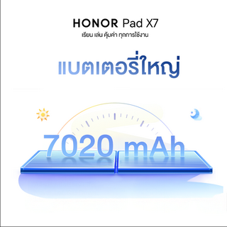 นอกจากการเปิดตัว HONOR X7d Series แล้ว เตรียมพบกับอีกหนึ่งไฮไลต์คือ HONOR Pad X7 แท็บเล็ตมินิคุณภาพดีที่รองรับการโทรเข้า-ออก มาพร้อมหน้าจอขนาดใหญ่ 8.7 นิ้ว มอบประสบการณ์การรับชมที่ยอดเยี่ยม แต่ยังพกพาสะดวก พร้อมแบตเตอรี่ความจุ 7,020mAh ที่ให้การใช้งานยาวนาน ไร้กังวลเรื่องแบตหมดเร็ว เหมาะสำหรับเด็กและผู้สูงอายุที่ต้องการสมาร์ตโฟนหน้าจอใหญ่ในราคาที่คุ้มค่าและจับต้องได้