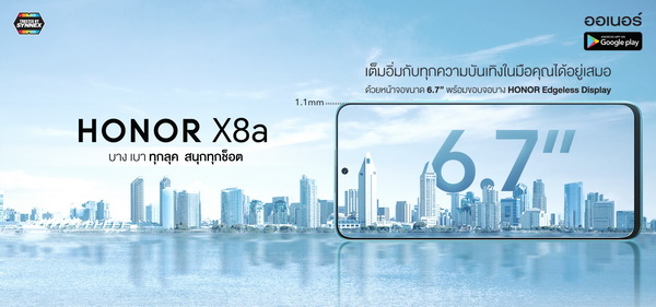 HONOR เปิดตัว HONOR X8a บาง เบาทุกลุค สนุกทุกช็อต ยกระดับหน้าจอและการถ่ายภาพด้วยเทคโนโลยี eXtra ที่เหนือกว่าจากตระกูล X Series