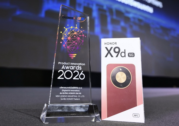 ออเนอร์ (HONOR) ผู้ให้บริการอุปกรณ์อัจฉริยะชั้นนำระดับโลก ตอกย้ำความเป็นผู้นำด้านนวัตกรรมอย่างต่อเนื่อง ล่าสุดสมาร์ตโฟน HONOR X9d 5G คว้ารางวัลชนะเลิศสินค้านวัตกรรมยอดเยี่ยมแห่งปี ในงาน BUSINESS+ PRODUCT INNOVATION AWARDS 2026 ซึ่งนับเป็นอีกหนึ่งบทพิสูจน์ความสำเร็จในการพัฒนาเทคโนโลยีที่ตอบโจทย์การใช้งานของผู้บริโภคยุคใหม่ได้อย่างครอบคลุมและเหนือระดับ