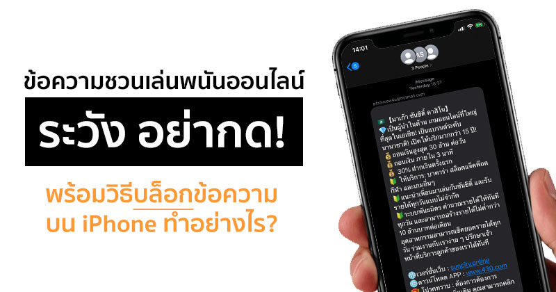 ระวัง! อย่ากดข้อความชวนเล่นการพนันออนไลน์จาก Suncity พร้อมแนะนำวิธีการบล็อกข้อความสแปมบน iPhone ต้องทำอย่างไร ?