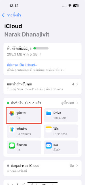 - เปิดใช้งาน iCloud Photos โดยไปที่ การตั้งค่า (Settings) > Photos > เปิด iCloud Photos เพื่อสำรองรูปถ่ายและวิดีโอไปบน iCloud โดยอัตโนมัติ