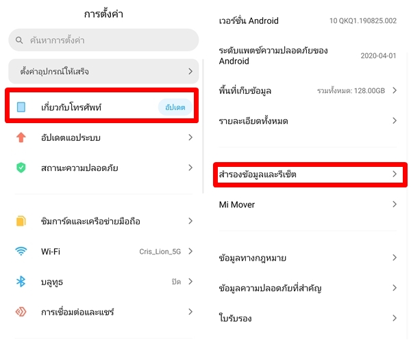 - การตั้งค่า > เกี่ยวกับโทรศัพท์