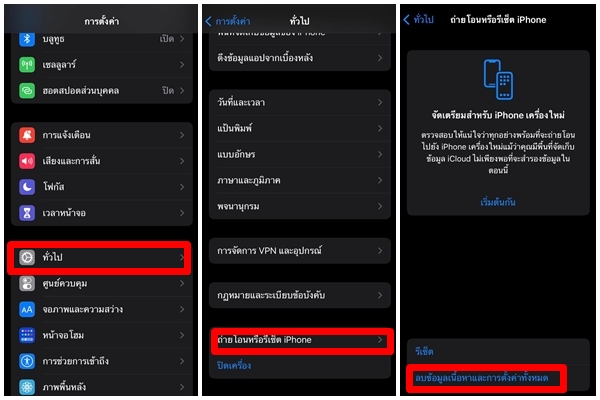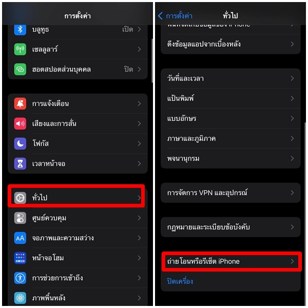 - ถ่ายโอนหรือรีเซ็ต iPhone