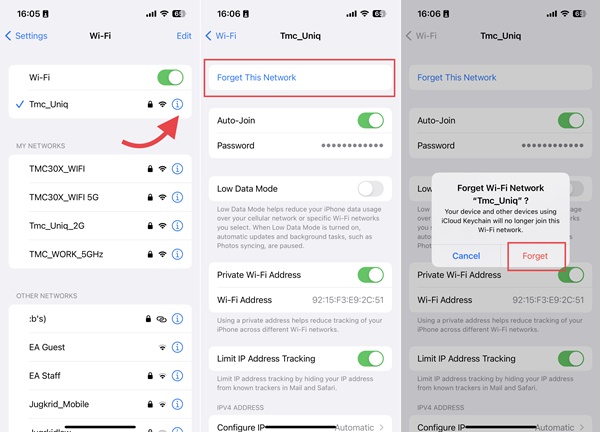 - แตะ Forget This Network จากนั้นแตะปุ่ม Forget