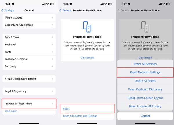 - แตะ Reset จากนั้นแตะที่ Reset Network Settings และใส่รหัสผ่าน