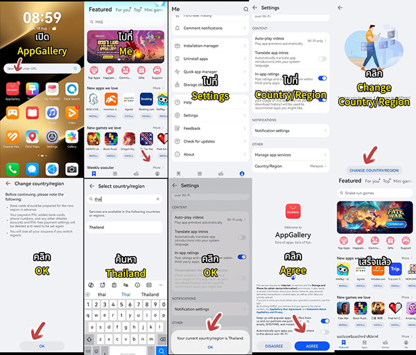 ขั้นตอนที่ 1 : ตั้งค่า AppGallery เป็นประเทศไทย