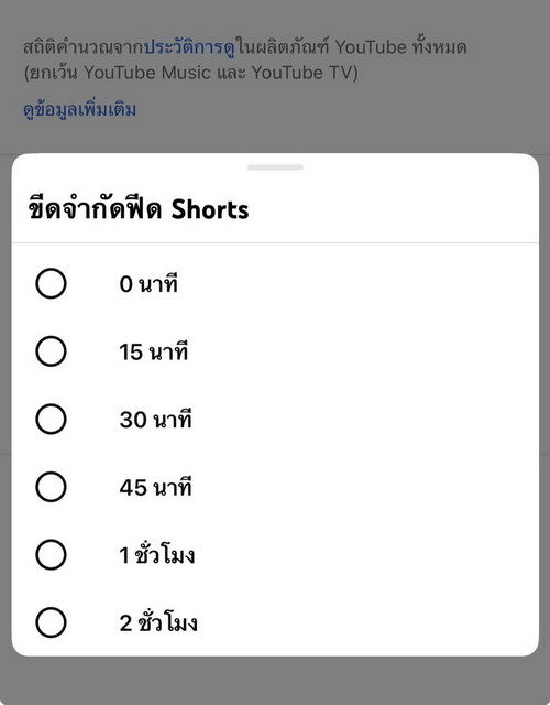 ก่อนหน้านี้ ระบบจะตั้งค่าขั้นต่ำได้เพียง 15 นาทีเท่านั้น แต่การเพิ่มตัวเลือก 0 นาทีเข้ามา ก็เท่ากับว่าผู้ใช้สามารถปิด Shorts บนมือถือได้อย่างมีประสิทธิภาพ